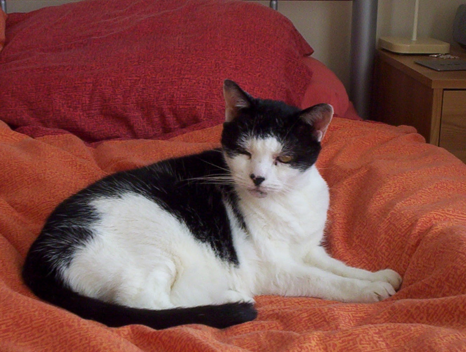 Hello from a sunny Bournemouth today - thank you so much for visiting!  Another cat card today in honour of the Cat Lovers Hop!  In my last blog post here I explained why we can't have a cat now and showed a picture of the last gorgeous cat we had.  Today, in honour of the Cat Lover's Hop, here is a photo of Lulu who was our previous kitty.  She was a little six week old kitten when she came to us.  She is a beautiful old lady here and we lost her about eight years ago.  She was adorable, cuddly and very good tempered and a bit haughty as she got older, which added to her charm!  We had Lulu and Lucky (from the previous post)  together for a while, she never tried to attack or hurt him but she did hiss at Lucky sometimes and do her best to ignore him but he absolutely adored her and followed her everywhere!  After we lost Lulu, Lucky was so sad and moped about for months cause he missed her so much!  We still miss them both incredibly!
